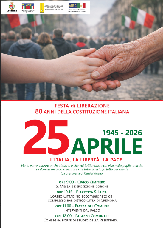25 aprile 1945-2026 Le celebrazioni della Festa di Liberazione in provincia di Cremona