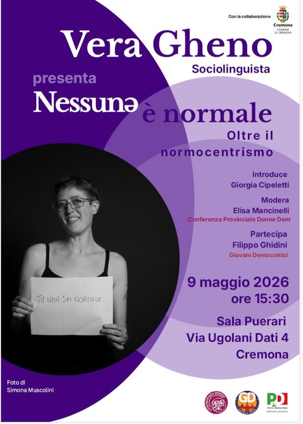 L’iniziativa, messa in campo dalla Conferenza delle Donne Democratiche, dai Giovani Democratici e dal Partito Democratico è organizzata in collaborazione con il Comune di Cremona e si inserisce nel percorso di formazione, partecipazione femminile, parità di genere ed elaborazione politica femminista promossi dalla Conferenza delle Donne democratiche insieme agli altri soggetti del PD citati.