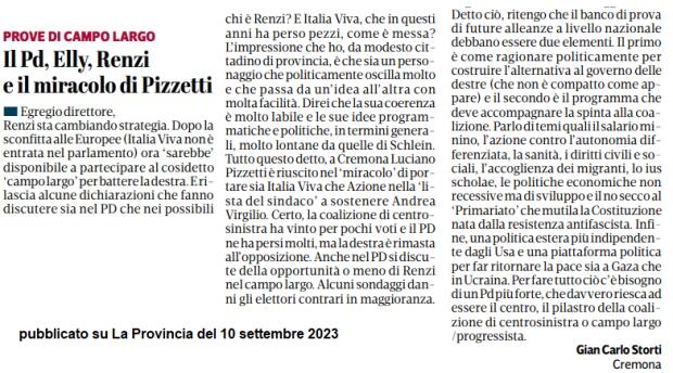 Tutto questo detto a Cremona, Luciano Pizzetti (storico esponente della sinistra cremonese) è riuscito nel ‘miracolo’ di portare sia Italia Viva che Azione nella ‘lista del sindaco’ a sostenere Andrea Virgilo.