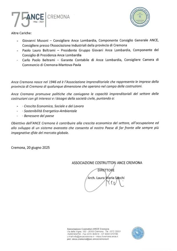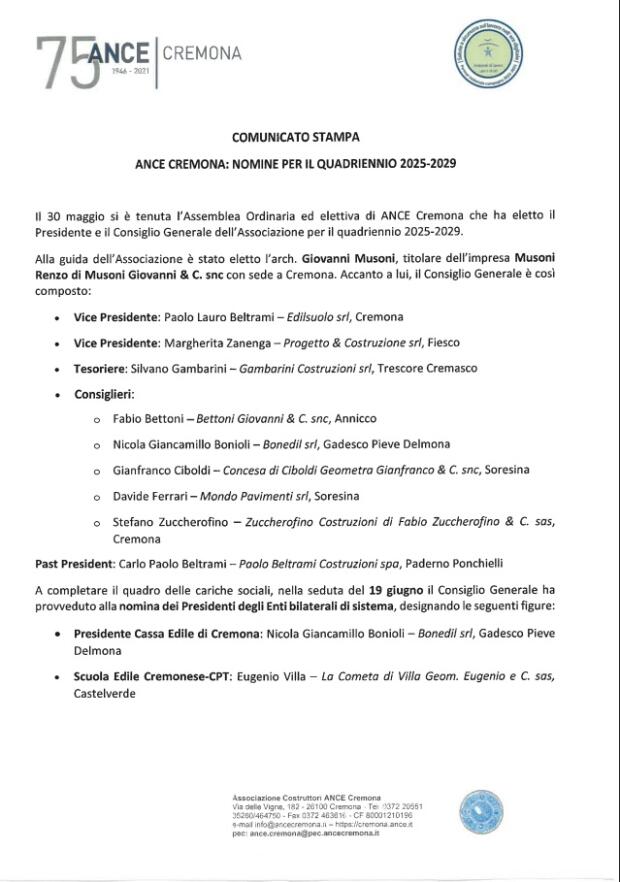 ANCE CREMONA: NOMINE PER IL QUADRIENNIO 2025-2029