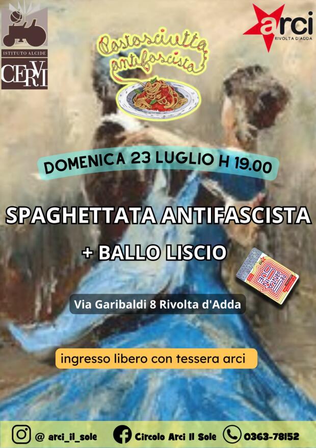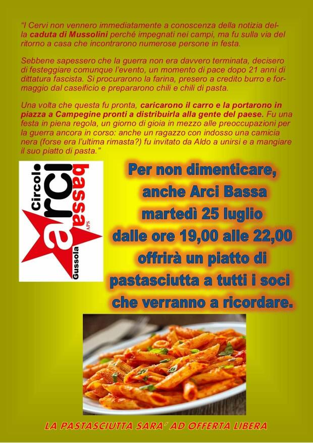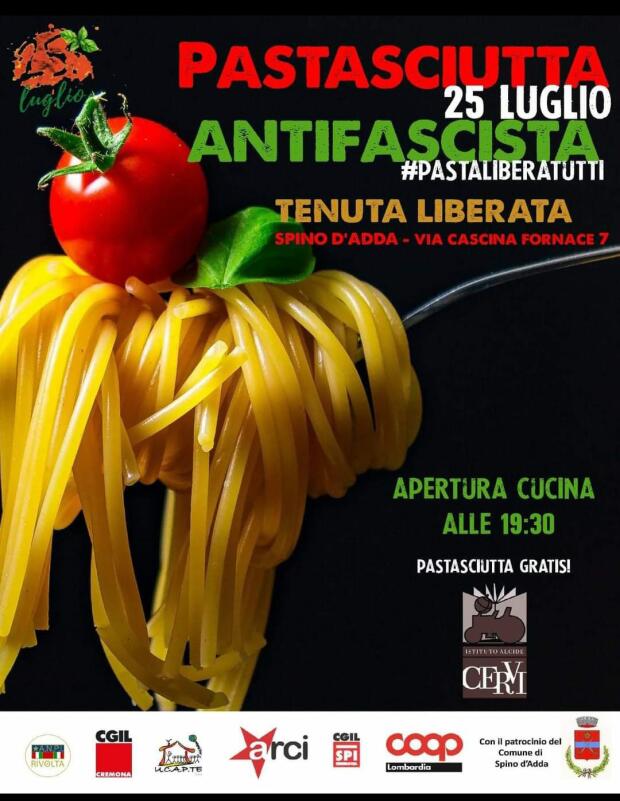 in occasione della ricorrenza del 25 luglio 1943 si ripropone la storica "Pastasciutta Antifascista"