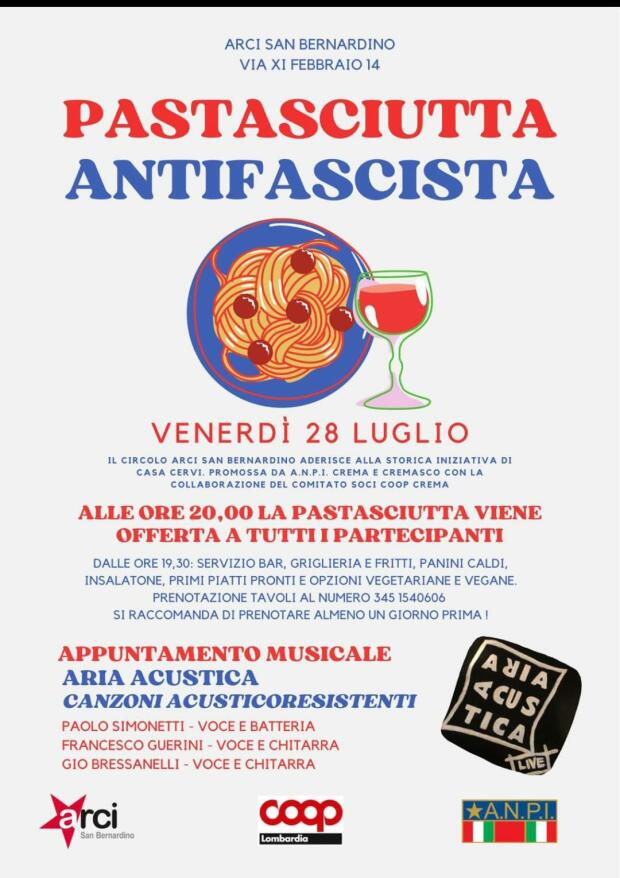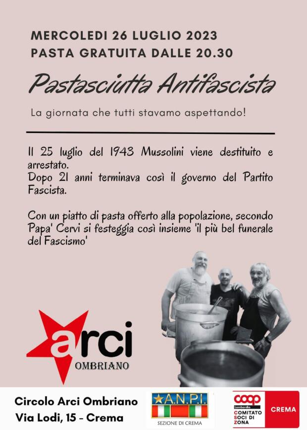 Anpi Cremona in collaborazione con i circoli ARCI Pastasciutta Antifascista il 25 luglio