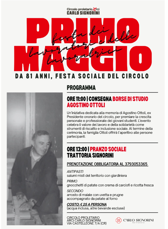 Arci Circolo Signorini Festeggia il 1° maggio con due eventi