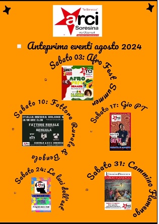Arci Soresina , tutti gli eventi del mese di agosto 2024 Evento 24 agosto