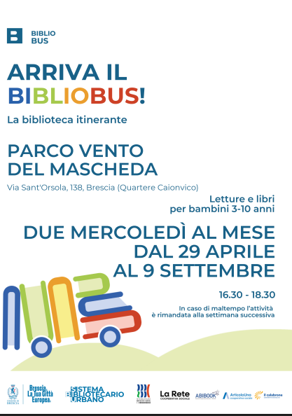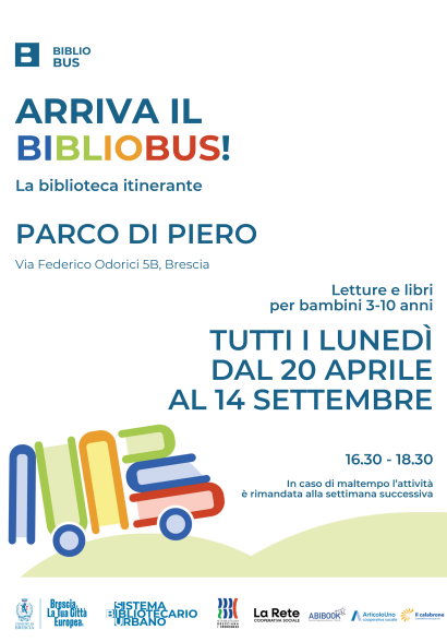 Dal 20 aprile al 16 settembre 2026 il Bibliobus, la biblioteca itinerante del Sistema Bibliotecario Urbano di Brescia, tornerà nei parchi cittadini portando la magia della lettura nei luoghi della vita quotidiana e avvicinando i bambini e le famiglie ai libri in modo semplice e accessibile.