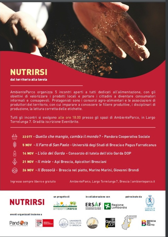 Gli eventi sono organizzati da AmbienteParco, all'interno del progetto NUTRIRSI - dal territorio alla tavola - in collaborazione con Ersaf e Regione Lombardia, con il patrocinio del Comune di Brescia.