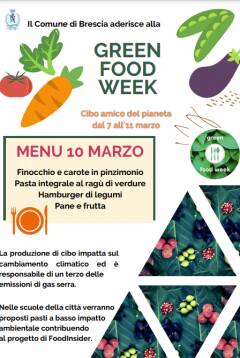 Venerdì 11 Marzo 2022 BRESCIA ADERISCE ALLA GREEN FOOD WEEK, PASTI A BASSO IMPATTO AMBIENTALE NELLE SCUOLE DELLA CITTÀ PER PRESERVARE L’AMBIENTE