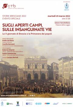 Lunedì 14 Marzo 2022 Iniziativa dedicata a commemorare Le X giornate, di cui quest’anno ricorre il 173esimo anniversario Sugli aperti campi, sulle insanguinate vie. Le X giornate di Brescia e la Primavera dei popoli Centro Teatrale Bresciano e Comune di Brescia