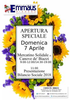 Per l'occasione il mercatino solidale dell'usato di Canove de' Biazzi (Torre de' Picenardi) sarà aperto dalle ore 9;00 alle 12:00 e dalle 14:30 alle 19:00.