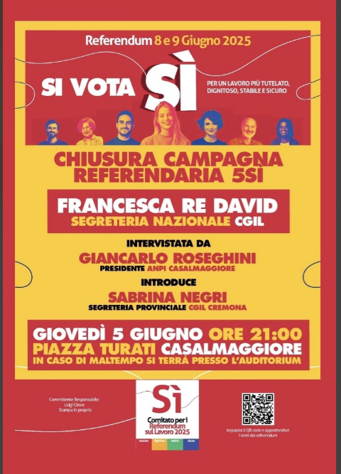 Casalmaggiore Francesca Re David (Cgil) Chiude campagna referendaria dell'8-9 giugno