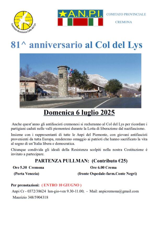 Con l'ANPI Cremona a Colle del Lys nell'81 anniversario della strage di partigiani