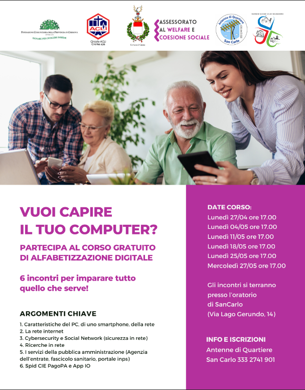 In un contesto in cui la trasformazione digitale incide in modo sempre più pervasivo sulla vita quotidiana, la piena cittadinanza digitale si configura oggi come un diritto fondamentale, oltre che una competenza imprescindibile. È a partire da questa consapevolezza che il Comune di Crema, in collaborazione con ACLI Crema, promuove un rinnovato ciclo del progetto di alfabetizzazione digitale, pensato in particolare per coloro che, per età o percorso personale, non hanno avuto l’opportunità di sviluppare familiarità con gli strumenti tecnologici.
