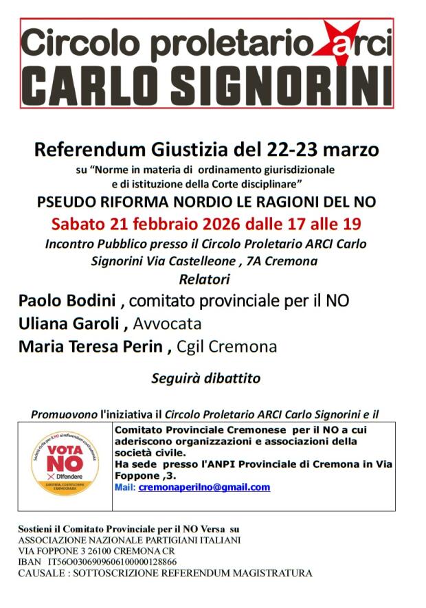 (Cr) Arci Signorini Incontro sulle Ragioni del NO