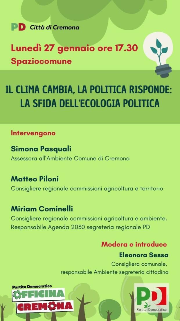 (CR) Incontro annullato PD Officina Ambiente Il clima cambia la politica risponde