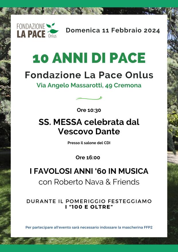 La nuova Fondazione “La pace onlus” nasce il 23 maggio 2011 e si attiva da subito per accreditarsi con l’ASL per poter svolgere le proprie attività; è approvato uno statuto che evidenzia che sarà non solo l’attività di RSA ma anche altri servizi, quali i mini alloggi protetti, la comunità alloggio, il centro diurno integrato e i servizi domiciliari a caratterizzare l’impegno e la sfida, accolta dal dott. Umberto Lonardi, nominato dal vescovo Dante Lafranconi Presidente della nuova Fondazione, affiancato dalla competenza e abnegazione della dott.ssa Marina Generali, nel ruolo di direttore generale.