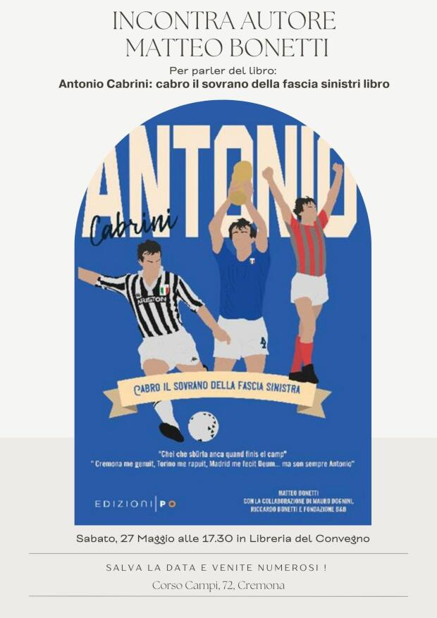 SABATO 27 MAGGIO ALLE ORE 17.30 - LIBRERIA DEL CONVEGNO- ANTONIO CABRINI: CABRO IL SOVRANO DELLA FASCIA SINISTRA DI MATTEO BONETTI/ DOMENICA 28 MAGGIO ORE 17:00 - LA CITTà DEI JINN DI GIOVANNI DI MARTINO