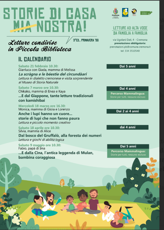 Cremona, 16 febbraio 2026 - La Piccola Biblioteca, che ha sede al Museo di Storia Naturale di Palazzo Affaitati, via Ugolani Dati, 4, riprende le attività rivolte ai bambini e alle famiglie, valorizzando la collaborazione con l’Associazione SemidiLibri costituita da giovani donne (molte sono madri che frequentano la biblioteca come utenti) con finalità di promozione della lettura. Da sabato 21 febbraio tornano infatti gli appuntamenti di promozione della lettura Storie di casa (mia) nostra: letture condivise in Piccola Biblioteca che si snoderanno fino a sabato 9 maggio.