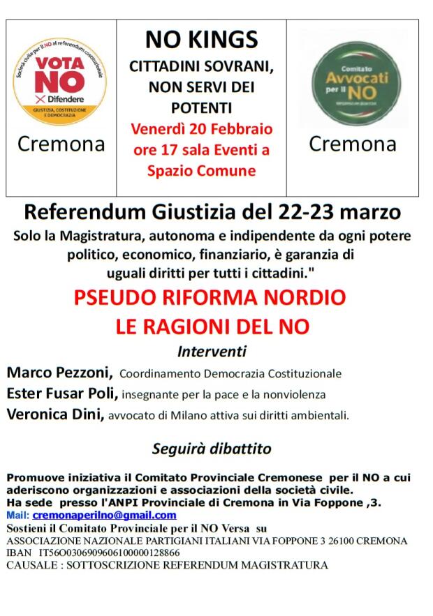 Referendum NO KINGS CITTADINI SOVRANI, NON SERVI DEI POTENTI