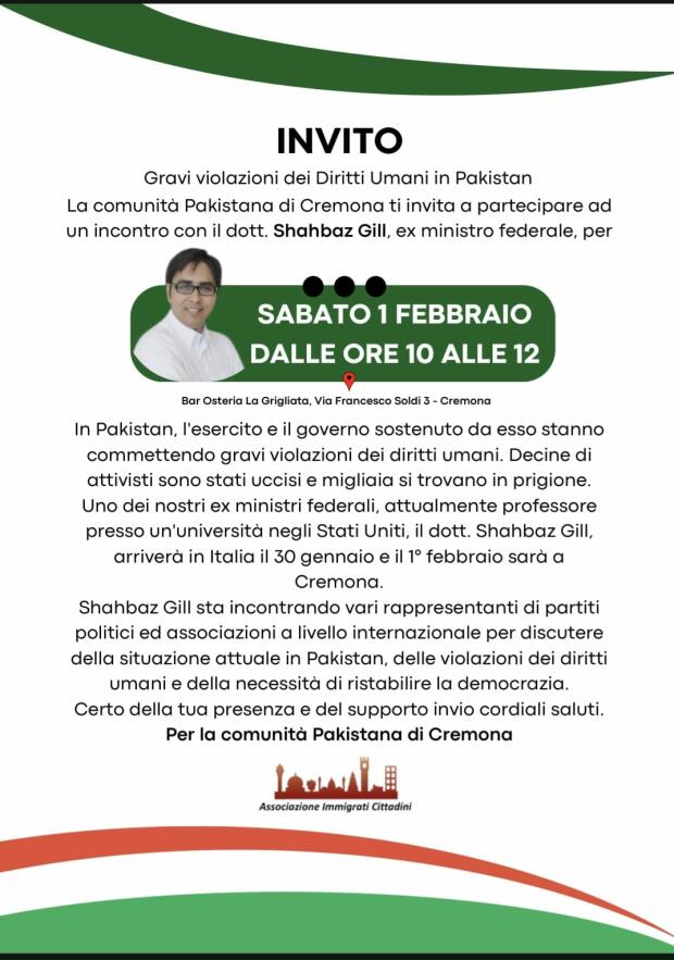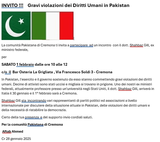 Dopo aver denunciato le violazioni dei diritti umani in Pakistan e annunciato il programma di domani, la scorsa notte l'esercito ha attaccato le case di 6 pakistani residenti in Italia, distruggendo le loro abitazioni e portando via le loro famiglie e cugini. Abbiamo bisogno del vostro aiuto e del sostegno dell'Unione Europea!