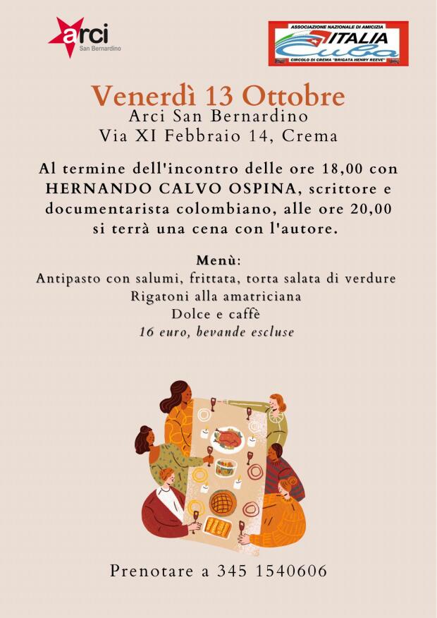 Venerdi 13 ottobre ore 18 presso sede Arci San Bernardino di Crema