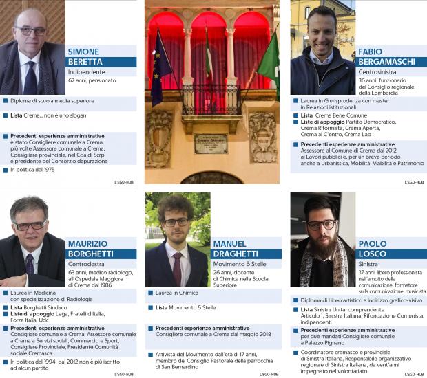 Su questi punti strategici pungoleranno i cinque candidati sindaco in corsa per la poltrona di sindaco alle imminenti elezioni amministrative. Che sono (in rigoroso ordine alfabetico): Simone Beretta (indipendente), Fabio Bergamaschi (Centrosinistra), Maurizio Borghetti (Centrodestra), Manuel Draghetti (Movimento 5 Stelle) e Paolo Losco (Sinistra Unita).