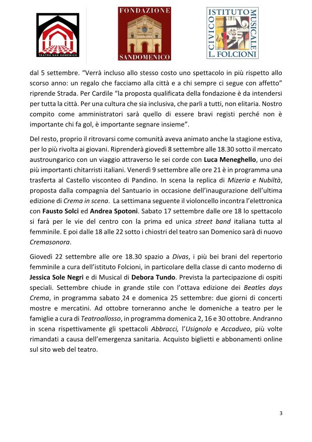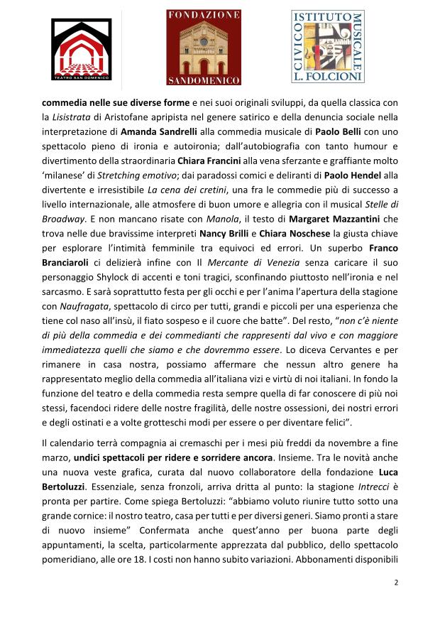 Crema Fondazione San Domenico Intrecci, la nuova stagione teatrale ‘racconta chi siamo’