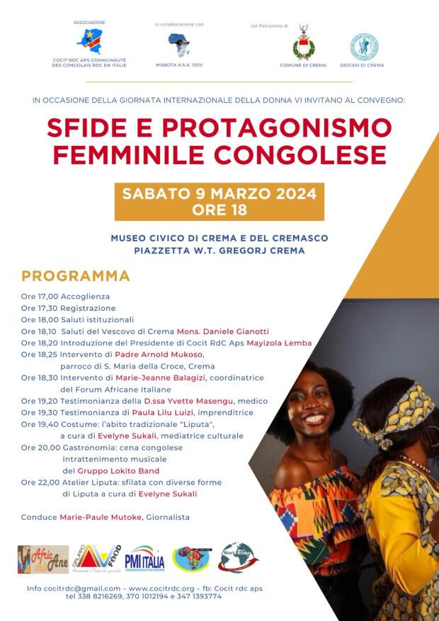 “ In occasione del mese della festa della donna - commenta l'assessora al Welfare Anastasie Musumary -, la comunità Congolese, vuole valorizzare le donne e metterle al centro, la sfida delle donne dovrebbe realizzare un senso di solidarietà che dia loro la forza per partecipare alla ricerca di una pace duratura e per lo sviluppo del proprio Paese e non costringerle più alla fuga. Molte di loro vive e lavora in Italia da anni, partecipano alla vita cittadina, rispettano le regole e sono perfettamente integrate nel tessuto sociale Italiano. Siamo sempre lo straniero di qualcun altro, è importante conoscere il prossimo e imparare a vivere insieme ”