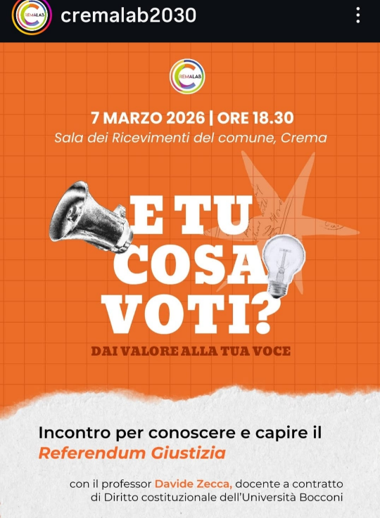 CremaLab organizza incontro informativo su Referendum Giustizia il 7 marzo