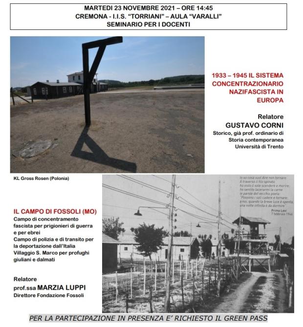 Il 23 novembre 2021 si terrà il primo seminario per i docenti sul sistema concentrazionario nazifascista e sul campo di Fossoli. (In allegato la locandina e le note biografiche dei relatori)