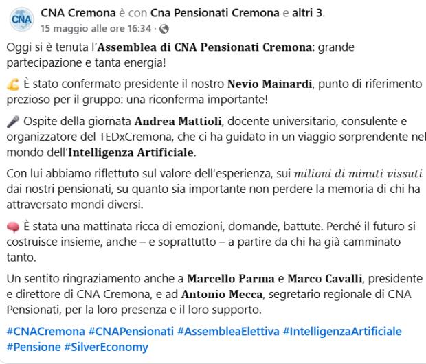 Cremona I pensionati CNA confermano Nevio Mainardi Presidente