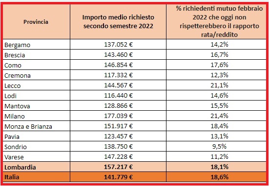 L’aumento dei tassi ha comportato il calo del valore medio del mutuo che in Lombardia è sceso a 157.217 euro nel secondo semestre 2022; in provincia di Cremona l’importo medio richiesto è stato pari a 117.332 euro, il secondo valore più basso rilevato nella regione.