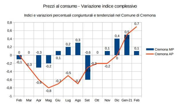 Cremona Rilevazione territoriale dei prezzi al consumo Febbraio 2021