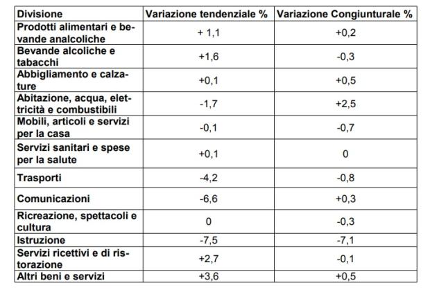Di seguito le variazioni congiunturali e tendenziali per divisione del definivo di settembre 2020: