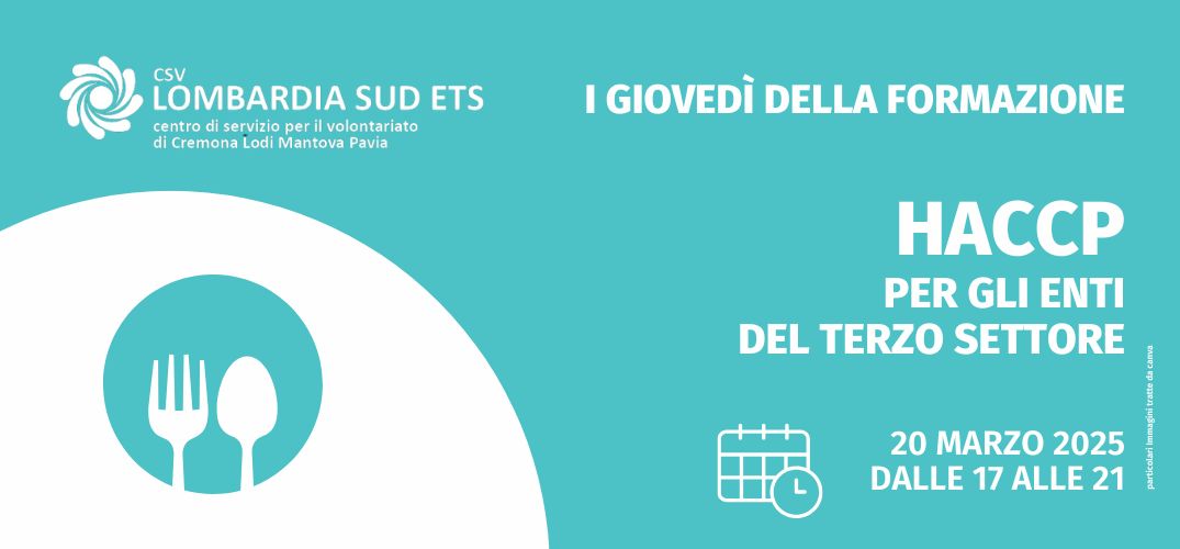 I Giovedì della Formazione: corso online 20 marzo dalle 17.00 alle 21.00 “HACCP per gli ETS”