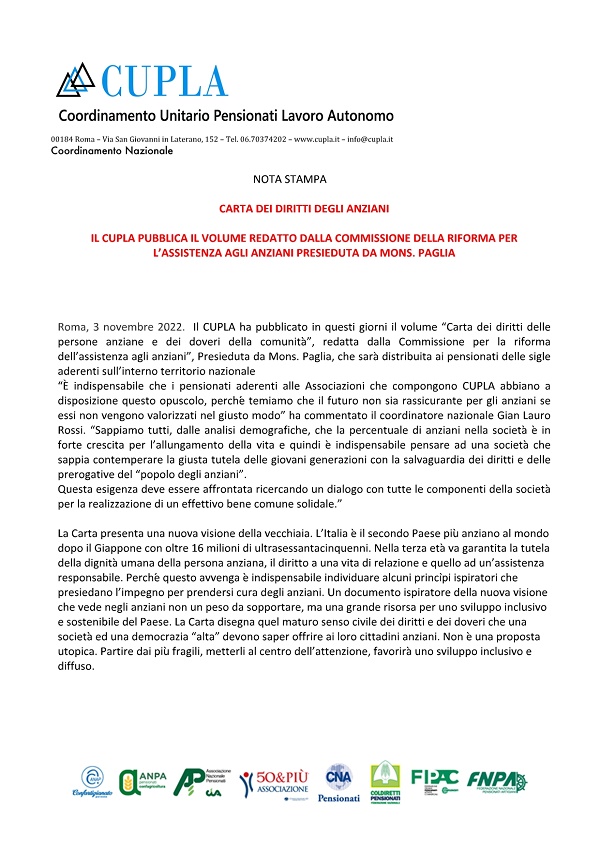 CUPLA CARTA DEI DIRITTI DEGLI ANZIANI