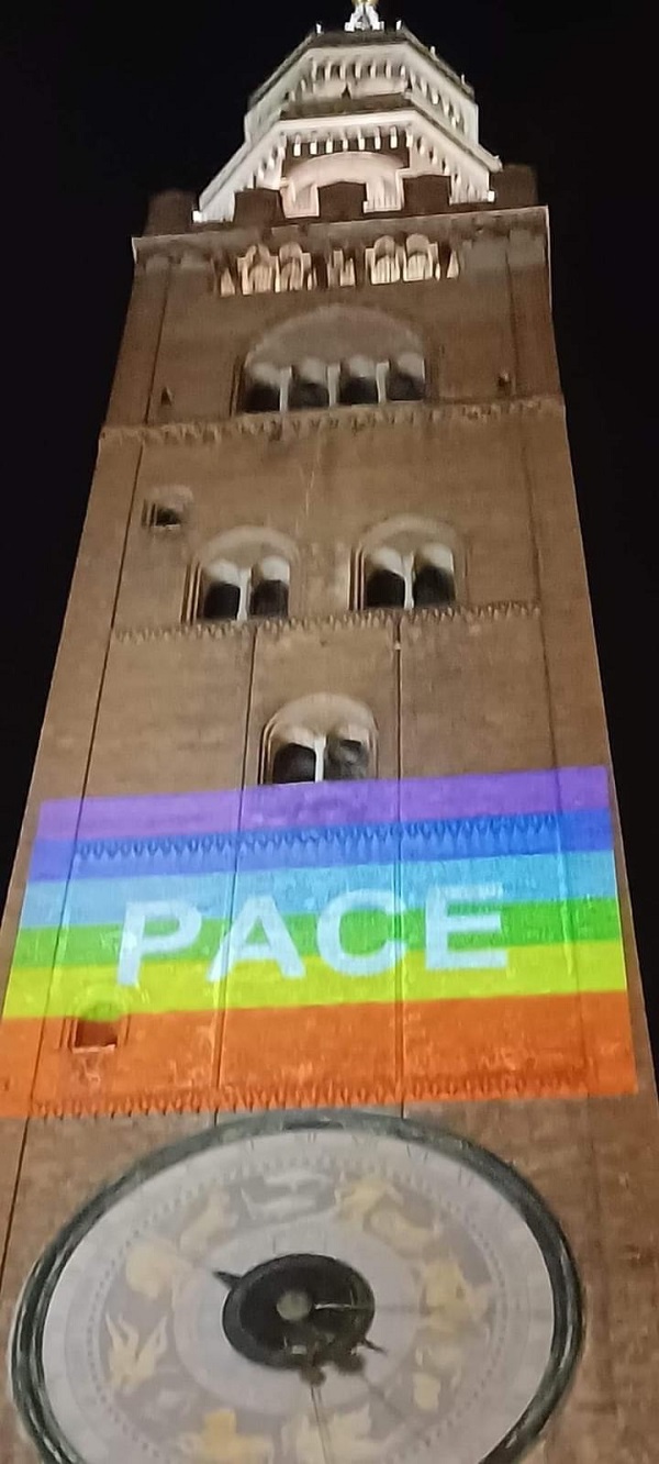 Molti cremonesi inoltre hanno potuto vedere i simboli della Pace svettare sul torrazzo di Cremona, grazie alle installazioni luminose effettuate durante la mobilitazione del 22 ottobre.