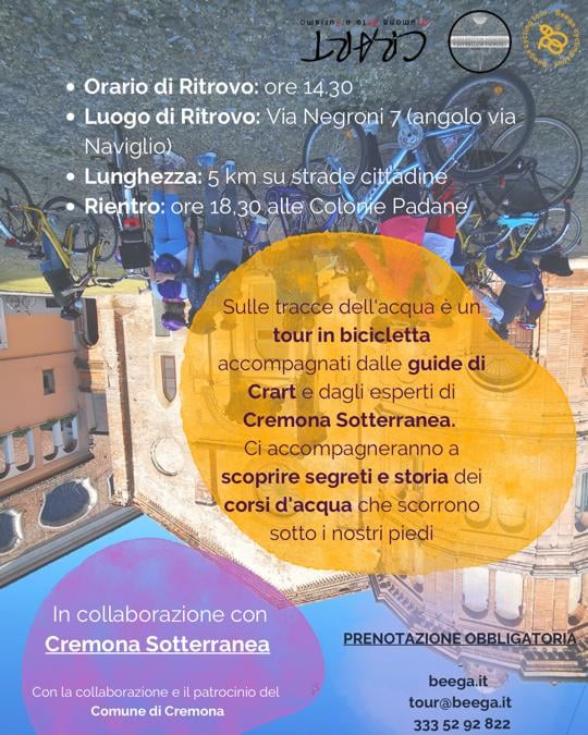 Cremona e l’acqua, un binomio inscindibile che va oltre il fiume Po, in sella alle biciclette pedaleremo seguendo le tracce dei corsi d’acqua, un tempo a cielo aperto, ancora presenti nel sotto suolo della città.