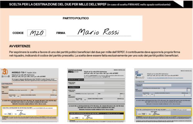 Scrivi M20 nello spazio dedicato al 2×1000 della tua dichiarazione dei redditi e firma accanto.