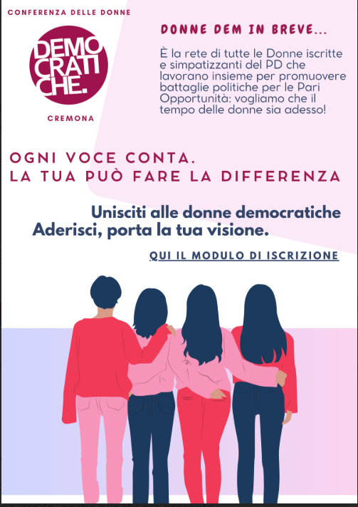 Il Coordinamento della Conferenza delle donne democratiche della regione Lombardia, nel rinnovare l’impegno per la difesa dei diritti umani e per la promozione della giustizia sociale, sente oggi più che mai l'urgenza di un'iniziativa che metta al centro la condizione femminile