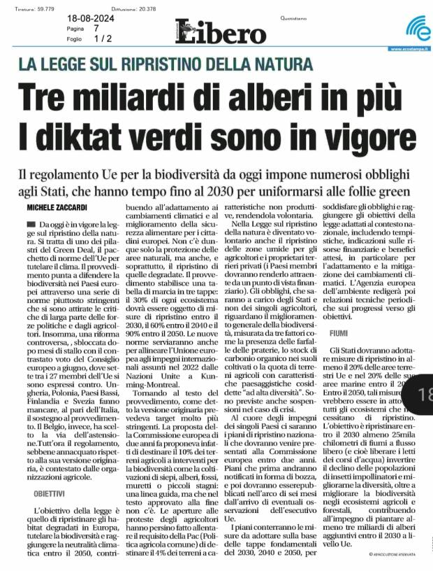 Ma si fanno che dite. Come non capire. L’Europa non da ‘ diktat verdi’ ma direttive che hanno lo scopo di ripristinare condizioni di vita più umane.