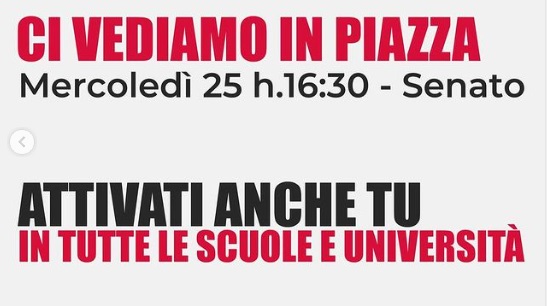 La manifestazione si terra Mercoledì 25 settembre alle 16:30 a Roma, davanti al Senato.