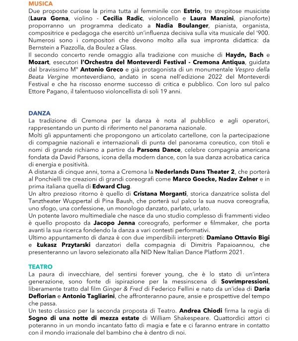 Apri tutto qui tutto il programma da settembre a dicembre 2022