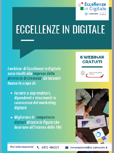 La Camera di Commercio di Cremona organizza una nuova edizione di Eccellenze in Digitale, in collaborazione con Google e Unioncamere Nazionale, con sei webinar online gratuiti a partire dal 2 maggio 2023.