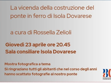 In sala consiliare mostra fotografica e conferenza a cura di Rossella Zelioli sulla costruzione del Ponte in ferro di Isola Dovarese