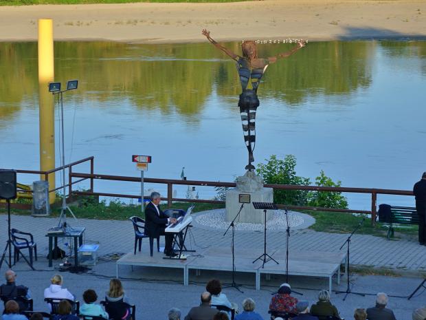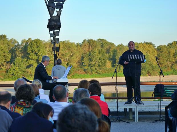 L'evento ha attirato un centinaio di persone che si sono accomodate di fronte alla statua del ‘Cristo del Po’ per godersi lo spettacolo ed un panorama suggestivo e magico.