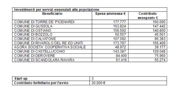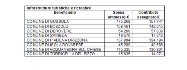 Ne hanno beneficiato i Comuni di Isola Dovarese, Piadena Drizzona, Bozzolo, Derovere, Torricella Del Pizzo, Gussola, Acquanegra sul Chiese e Spineda.