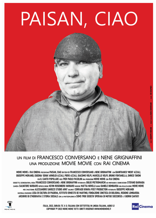 Lunedi 4 aprile 2022, ore 21.00 CineChaplin Cremona PAISAN, CIAO un film di FRANCESCO CONVERSANO e NENE GRIGNAFFINI con GIANFRANCO MICIO AZZALI, GIUSEPPE MORANDI una produzione MOVIE MOVIE con RAI CINEMA ITALIA, 2022, 73’
