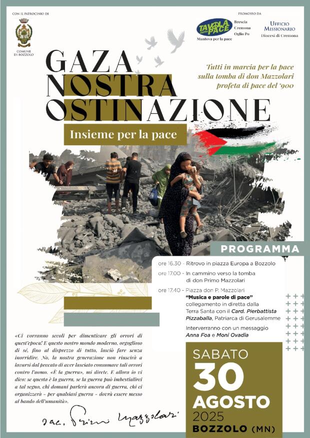 Come Partito della Rifondazione Comunista ci riconosciamo pienamente nei contenuti della piattaforma della manifestazione “GAZA NOSTRA OSTINAZIONE” che si terrà domani, sabato 30 agosto, a Bozzolo e saremo presenti per chiedere la fine del genocidio in corso e il riconoscimento dello stato Palestinese.