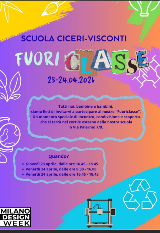 “FuoriClasse è un progetto che punta a rafforzare il legame tra scuola e territorio, a valorizzare lo sguardo delle bambine e dei bambini come strumento autentico di lettura del mondo, e a costruire reti concrete con istituzioni, realtà educative e commercianti locali. - spiega il Dirigente dell’Istituto Valerio Cipollone - Partecipare alla Design Week significa portare questi valori, sostenibilità, creatività, pensiero critico, senso civico, dentro uno dei contesti culturali più visibili della città”.