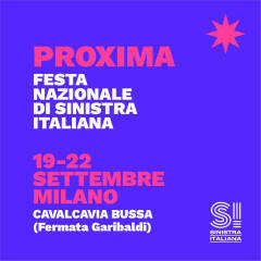 Sabato 21 Settembre 2024 PROXIMA Festa nazionale di Sinistra Italiana a Milano 19 - 22 Settembre Milano | Cavalcavia Bussa | Fermata Garibaldi